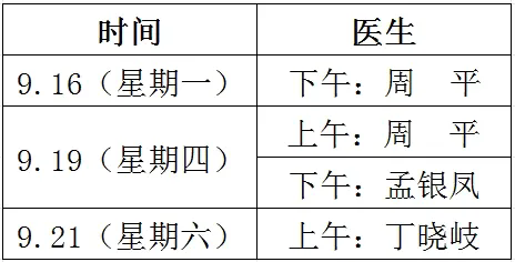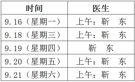 為了讓您能夠更便捷地獲取優(yōu)質(zhì)醫(yī)療服務(wù),我們特別為您整理了2024年9月16日至9月22日這一周的專家出診信息。我們始終秉持著以患者為中心的服務(wù)理念,致力于為您的健康保駕護(hù)航,希望這份詳細(xì)的坐診安排能幫助您合理規(guī)劃就醫(yī)時(shí)間,讓您在需要的時(shí)候能夠及時(shí)得到專業(yè)的診療。祝您身體健康!