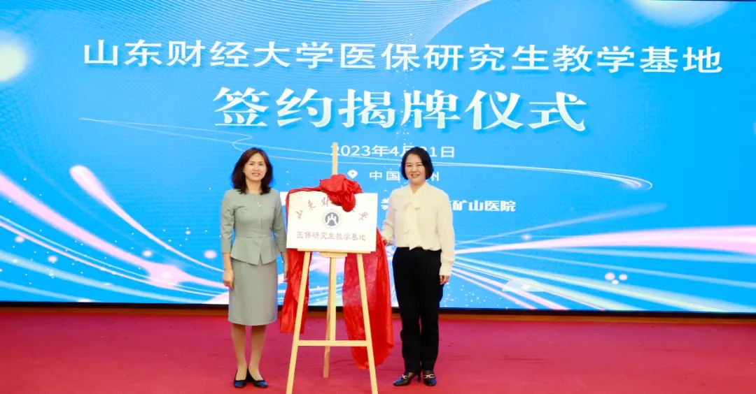 山東財經(jīng)大學(xué)保險學(xué)院黨委書記張娟與徐州市礦山醫(yī)院黨委書記、院長杜瑜共同揭牌