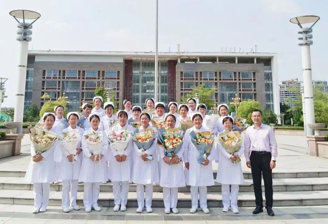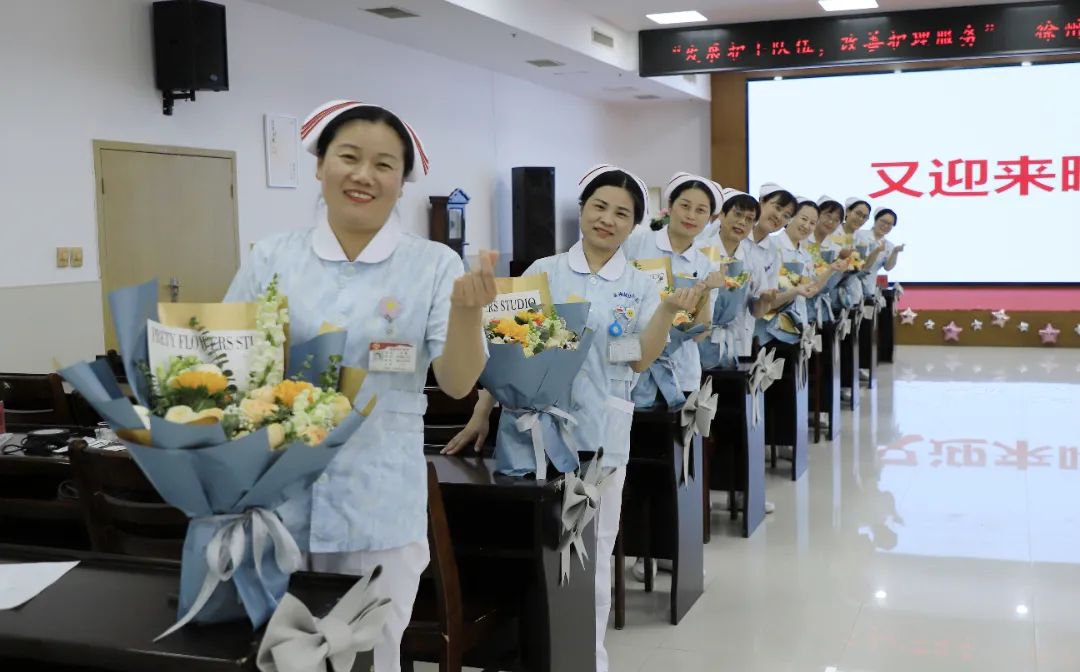 徐州生物工程學(xué)院的學(xué)生為我院進(jìn)行授帽的護(hù)理部主任及護(hù)士長送上鮮花