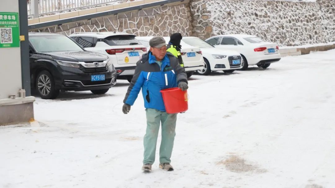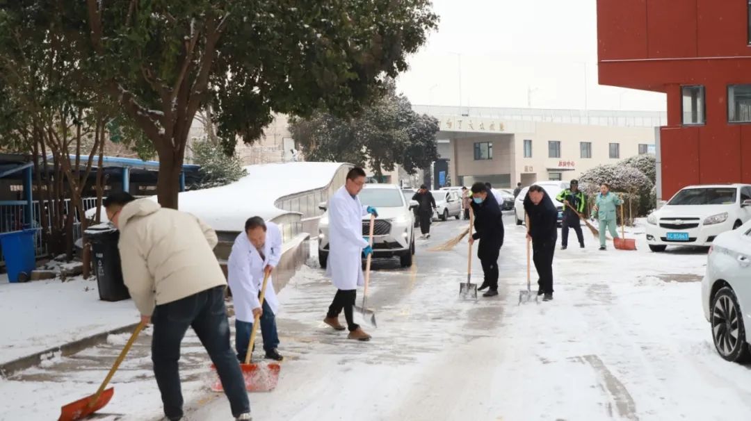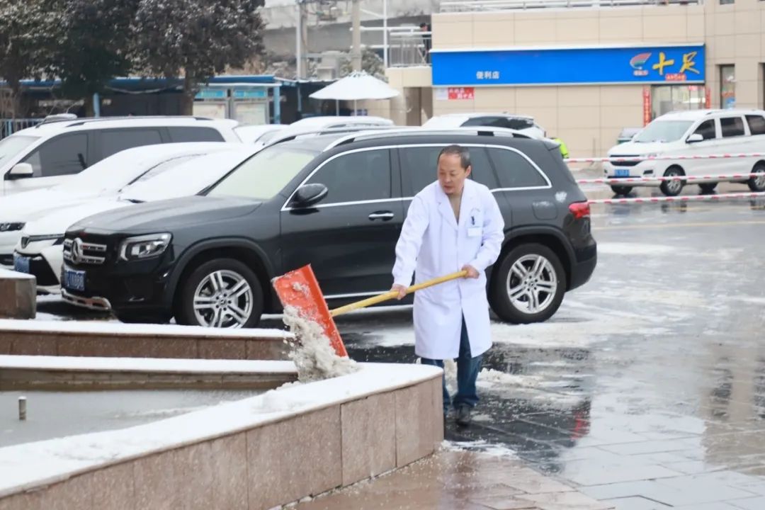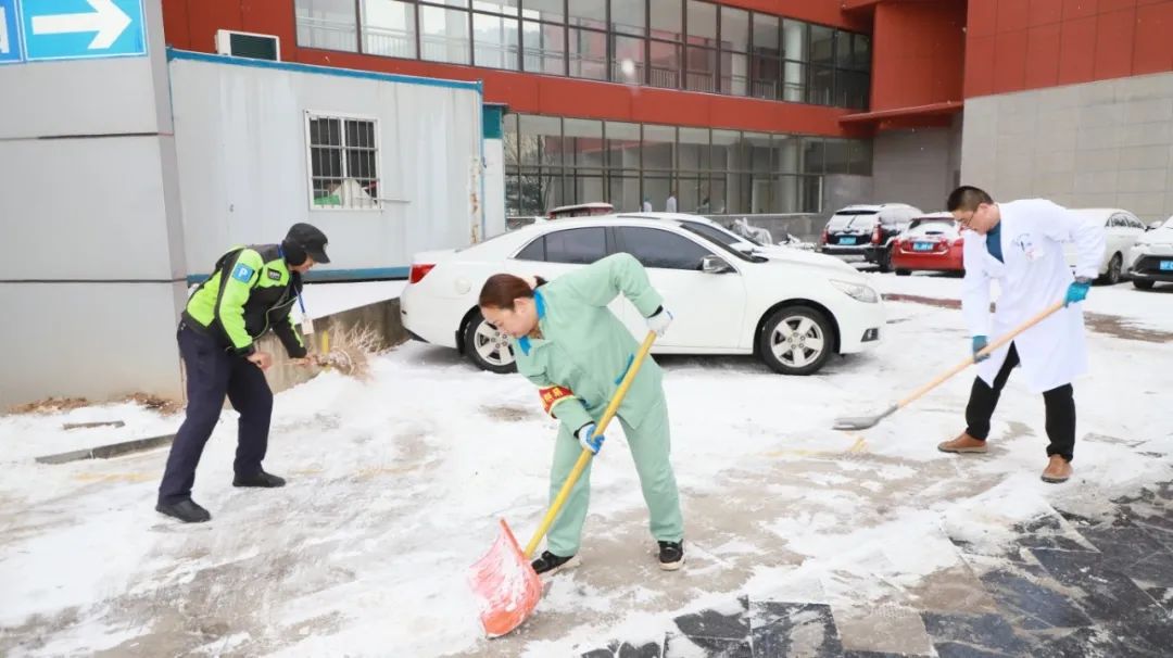為積極應(yīng)對路面積雪帶來的影響,給患者提供安全便利的就診環(huán)境,徐州市礦山醫(yī)院院領(lǐng)導(dǎo)帶領(lǐng)職能科室及相關(guān)物業(yè)人員積極開展掃雪行動(dòng),保障來院人員道路出行安全。掃雪的同志們迎著刺骨的寒風(fēng)雖然手被凍得通紅,但除雪的決心依舊堅(jiān)決。通過大家齊心合力的奮戰(zhàn),逐片清掃院區(qū)內(nèi)的積雪,醫(yī)院各主干道上都清掃出“安全路”。質(zhì)量安全管理部(后勤保障部)安排物業(yè)人員在門診樓各入口內(nèi)放置防滑墊,防止人多擁擠意外摔倒;停車場清理各機(jī)動(dòng)車入口、坡道,防止車輛打滑,力保通行安全。