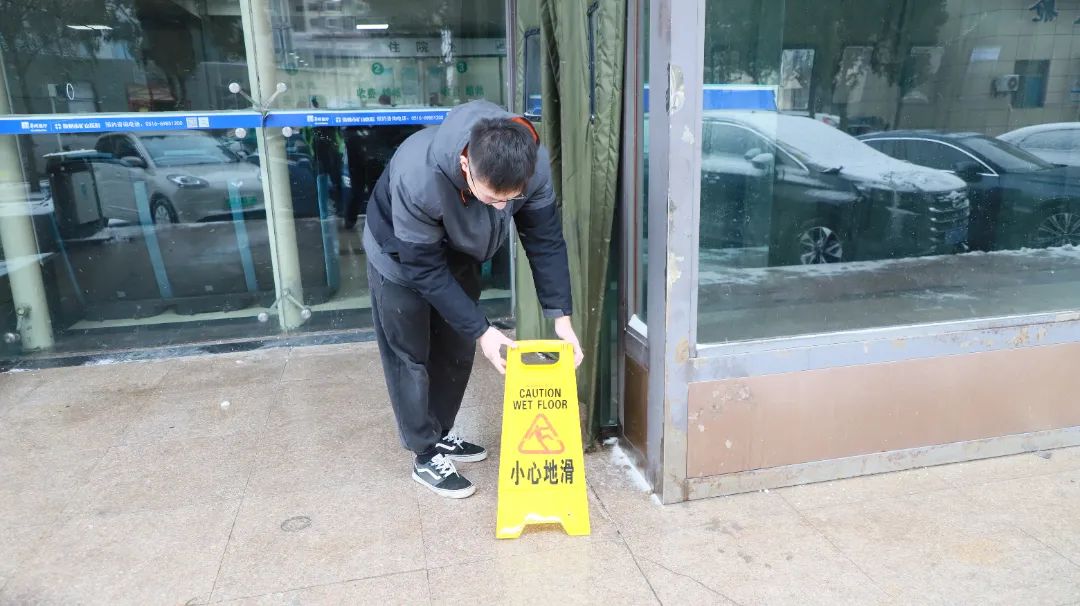 同時(shí),為進(jìn)一步降低雨雪冰凍安全風(fēng)險(xiǎn),醫(yī)院始終保持“時(shí)時(shí)放心不下”的責(zé)任感,嚴(yán)格落實(shí)防凍,防凝、防滑、防雪等安全防范措施,妥善安排相關(guān)人員引導(dǎo)就醫(yī)群眾安全出行,并在顯著位置放置警示標(biāo)志、鋪設(shè)防滑地墊等,為就診群眾和廣大職工出行開辟安全路和放心路,為急危重癥患者搶救暢通安全通道并組織安全員加強(qiáng)重點(diǎn)部門、重點(diǎn)設(shè)備的安全巡查,持續(xù)加大全院安全隱患排查力度,加固院內(nèi)廣告牌、棚架等戶外搭建物,防止大風(fēng)、積雪導(dǎo)致?lián)p壞。