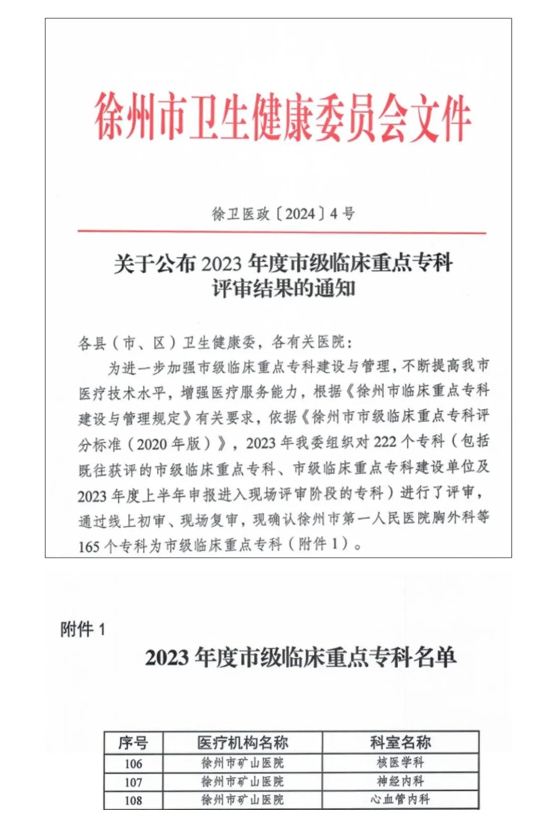 近日,徐州市衛(wèi)生健康委公布了2023年度市級臨床重點??泼麊?,我院核醫(yī)學(xué)科、神經(jīng)內(nèi)科、心血管內(nèi)科三個臨床科室順利通過新一輪評審,被確認(rèn)為“市級臨床重點???rdquo;。